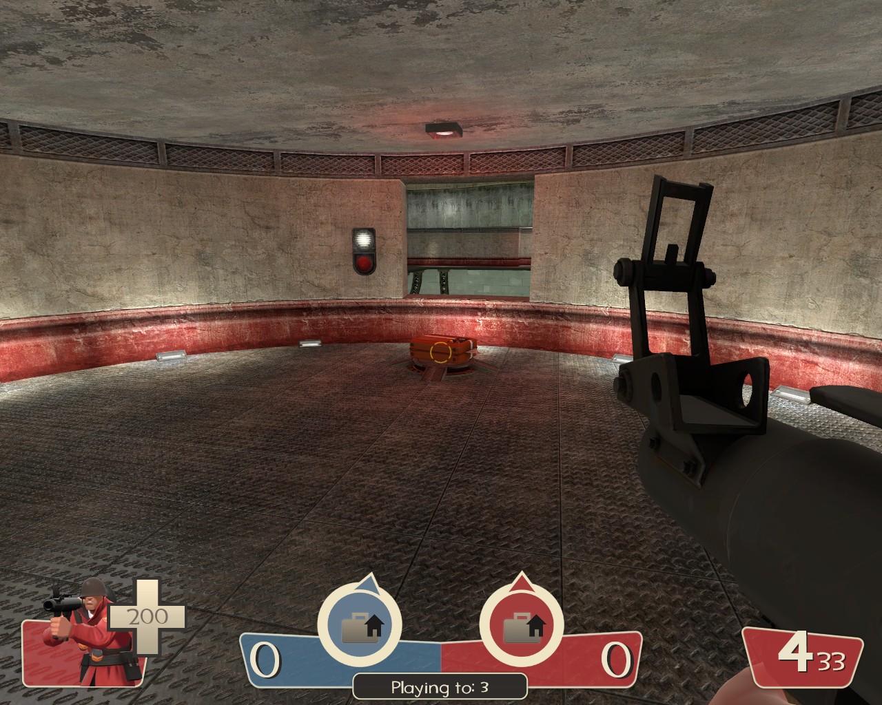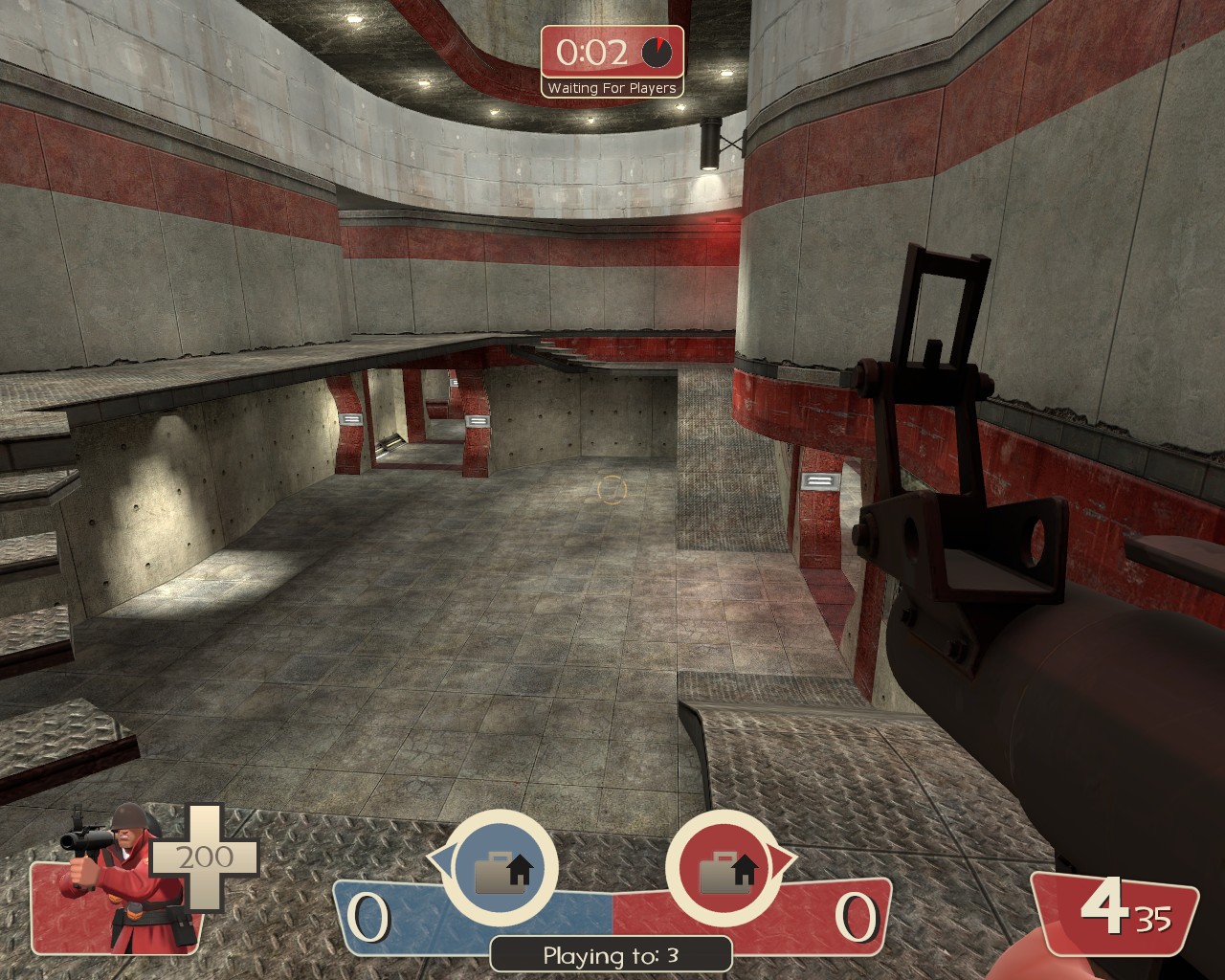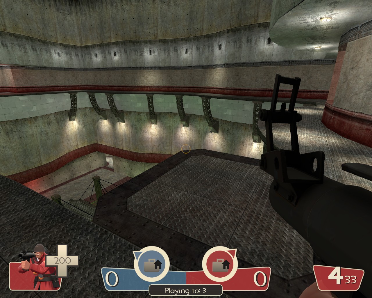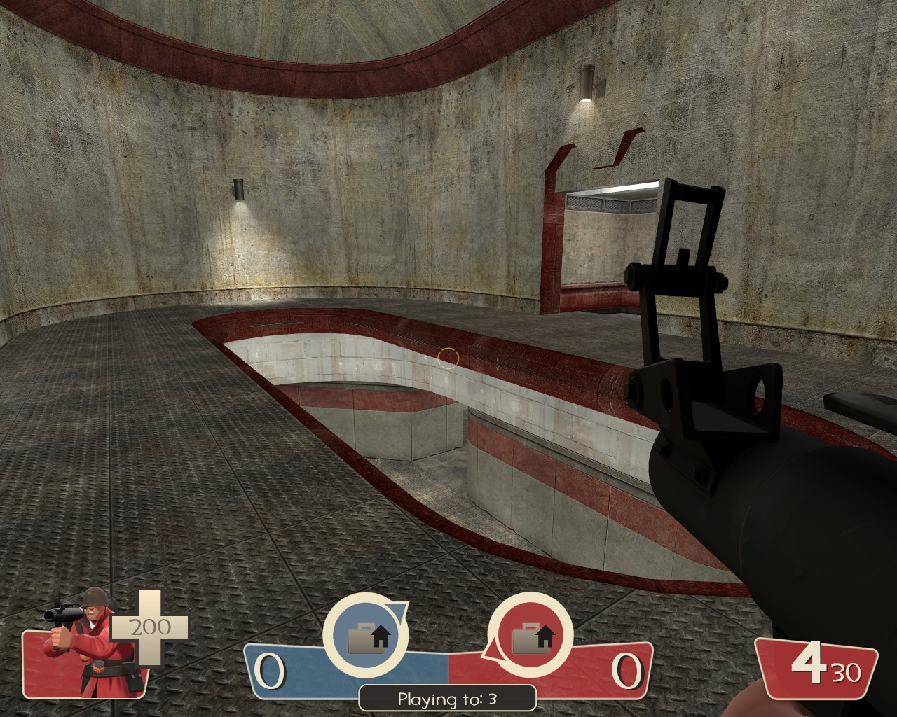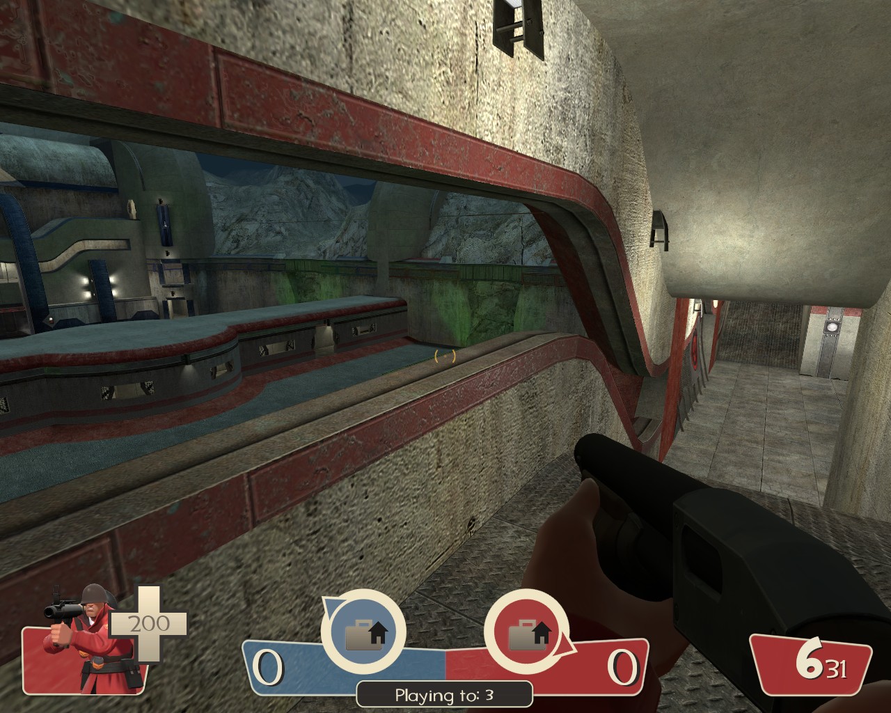 Hot on the heels of the 2mach remake, a mapper who goes by Scragnog has ported Fortress Forever’s well6 for TF2. I loaded it up, and it has some quirks. You cannot see the window grating in the flag room, which makes it tough to get through, there is no health in the attic, and the gate is closed (no detpacks in TF2). Update: I’m told sticky bombs blow the grate. I don’t think this will make the Ht Servers pub rotation due to its massive size (89 megs unzipped) and gameplay bugs, however, we might run some PUGs on it for nostalgia.