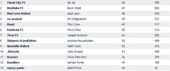 As the EPL season nears the midway mark it’s time to look at how everyone is doing in the Ht EPL fantasy league. Weirdly enough, only 100 points seperates 1st from 8th. It’s pretty tough to make up points in this style league as a lot of the same players reside on everyone’s rosters. Alc continues to hold onto the #1 spot with Bucky and myself not too far behind. The brothers Indig and Fero continue to stay close, Fluxcore also has been making moves. Rumple and MrBuzzcut are both having great weeks lately. Kart on the other hand has put all of his love for Chelsea into a losing season. A bunch of people have joined the league after it had started and all of them have been having decent weeks lately and have climbed up. Val and Doodle are the newest players and are getting used to the format, most likely because of this announcement.