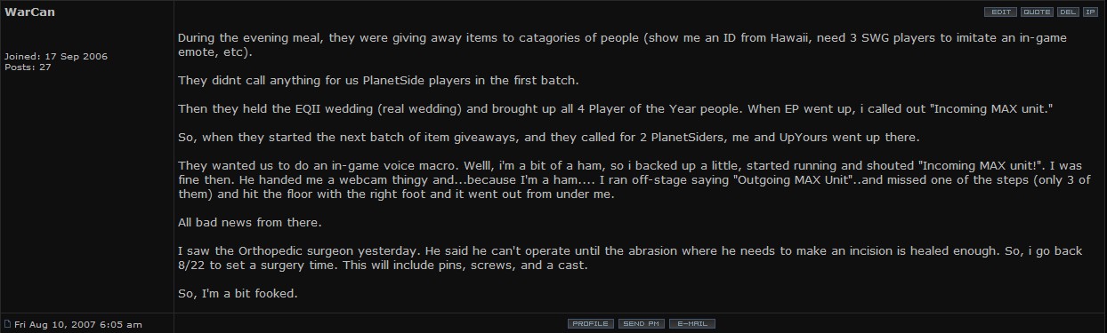 - WarCan hammed it up at the PlanetSide Fan Faire?