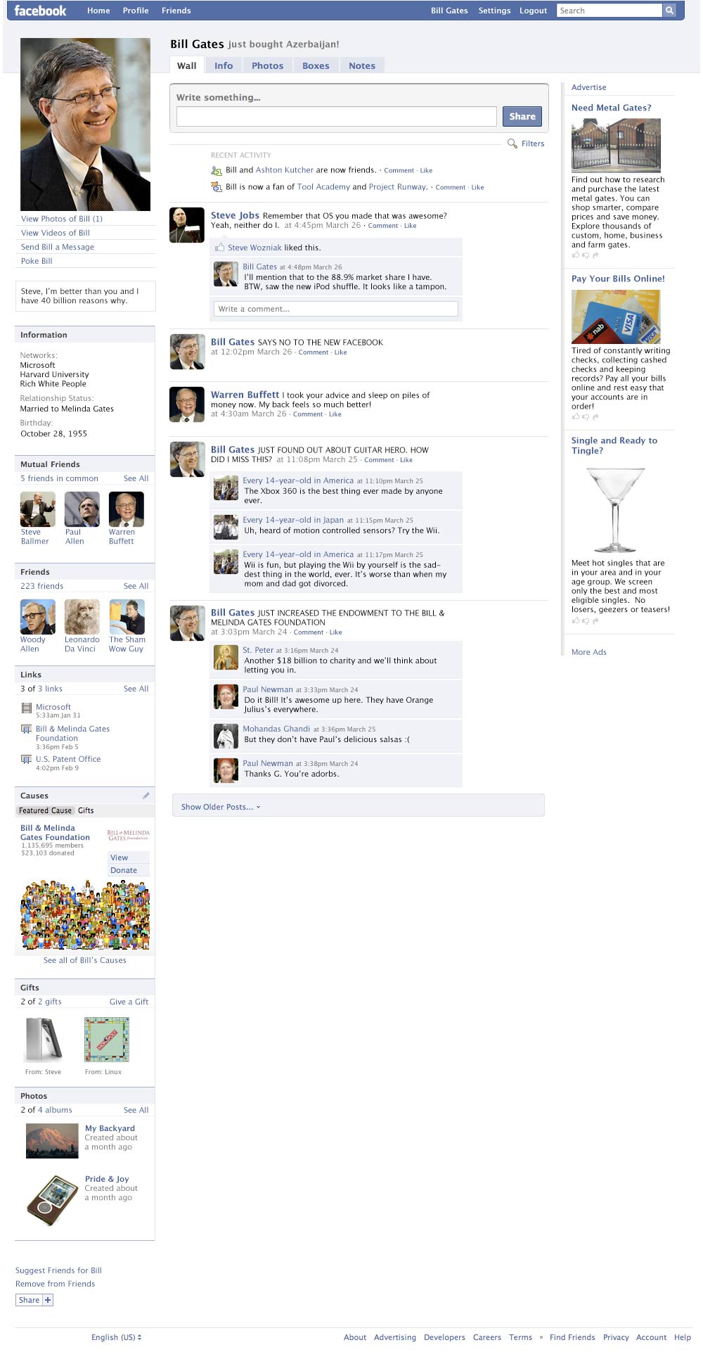 Have you ever wondered what Bill Gates Facebook page would look like?