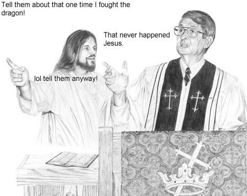 <alc> people who dont believe that god created earth and then made his own son who is also him and then had his son who is also him get tortured and killed to show humans they shouldnt eat apples from trees on the advice of a talking snake is a sucker